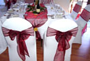 Fancy jacquards and dobby checks, where the design is woven into the fabric, are standard in more up market establishments. Jacquards and dobbys are available in white and cream. In addition, heavy duty plain dyed tablecloths, overlays and serviettes are available in a variety of colors.
